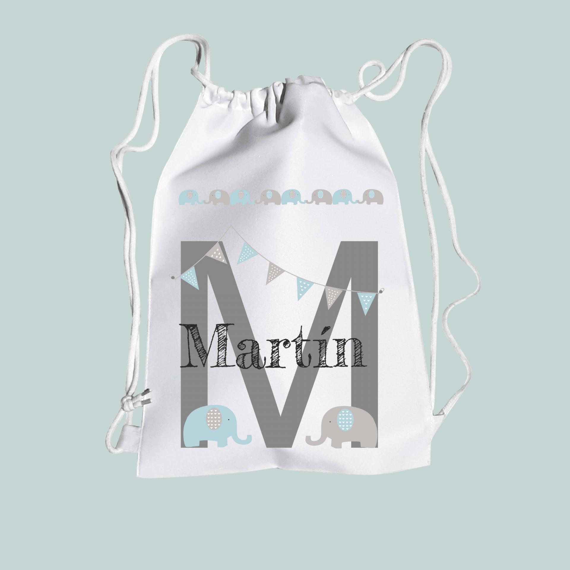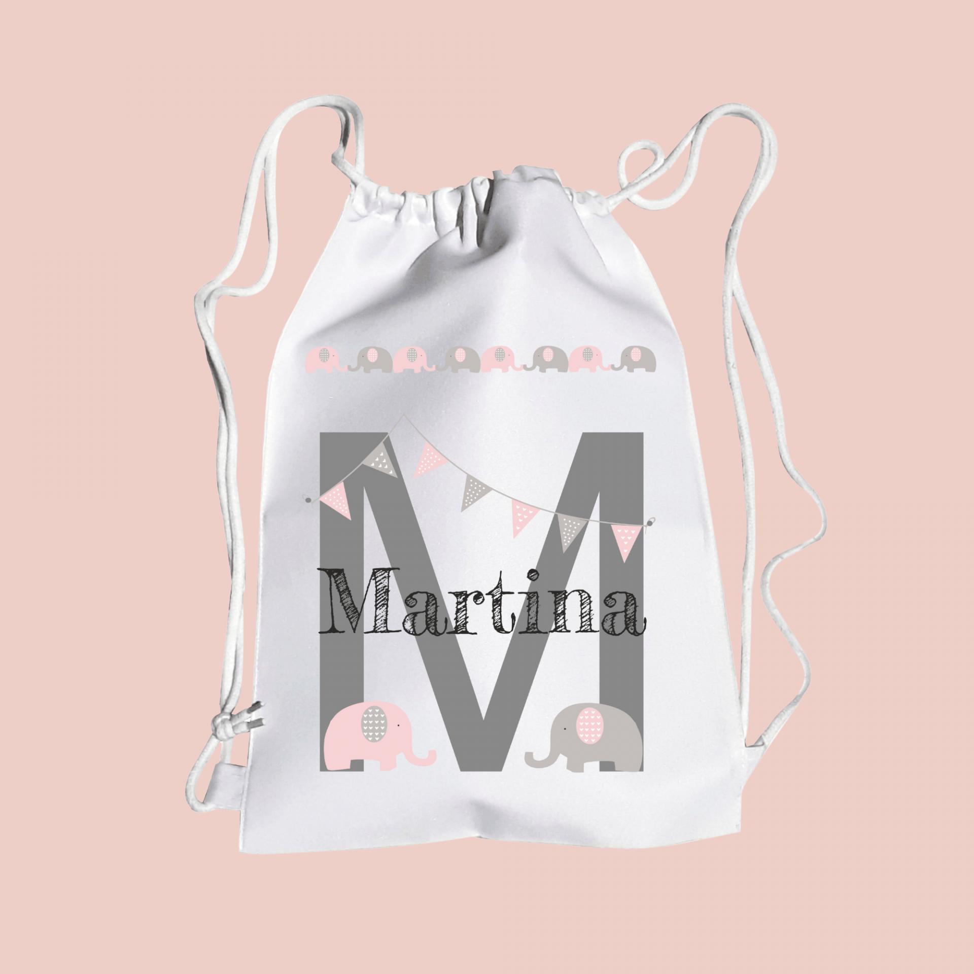Mochila Infantil Personalizada Worfull –Saco Personalizado-NOMBRE INICIAL GIGANTE ELEFANTE ROSA